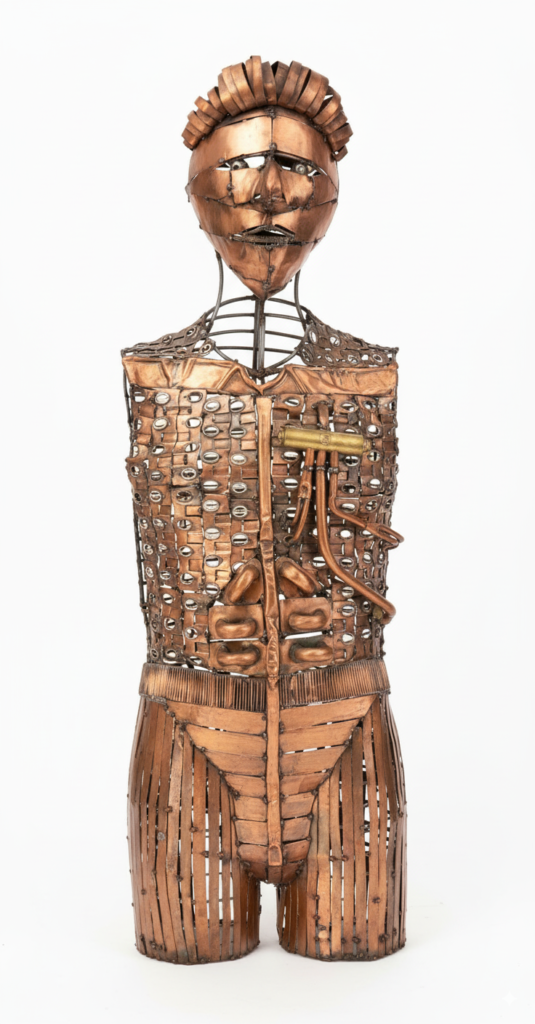 Construido com cobre proveniente de serpentina de maquina de cerveja e esquentador, varão roscado.